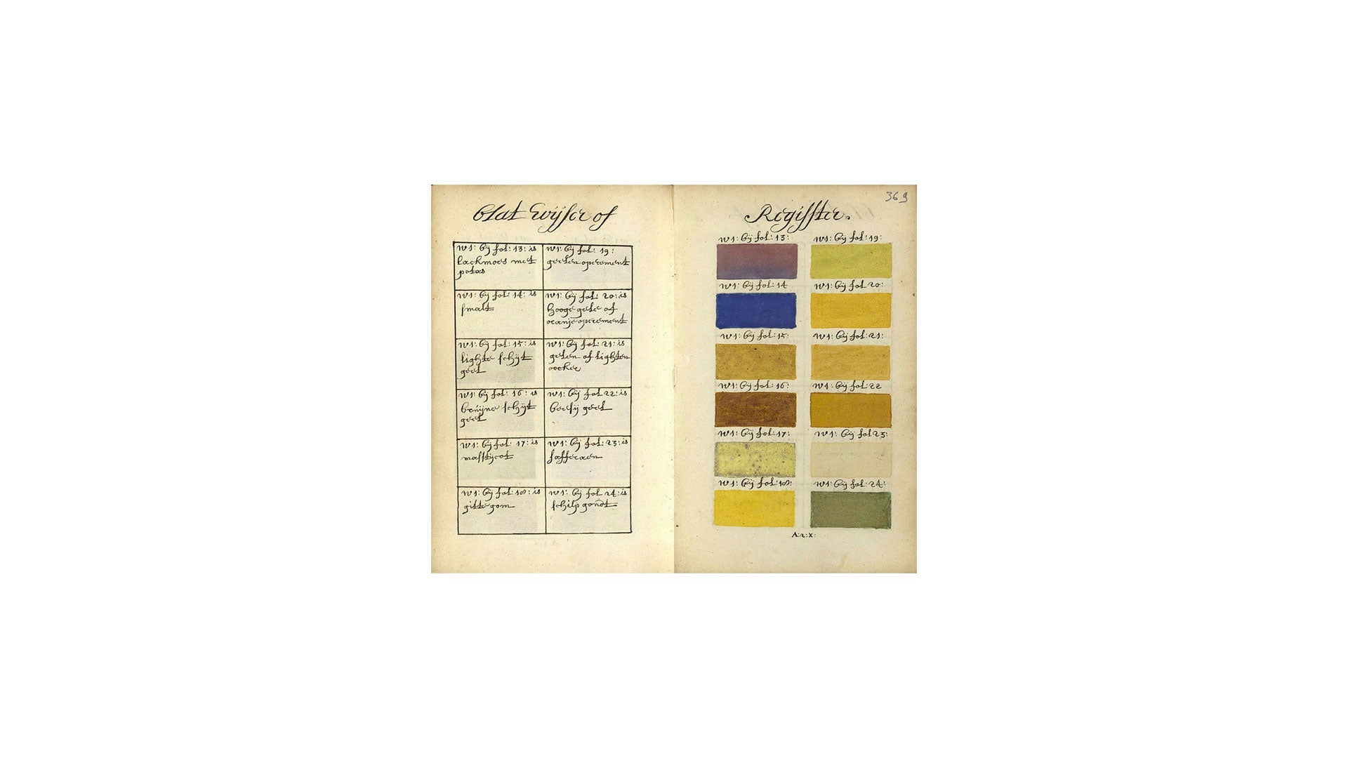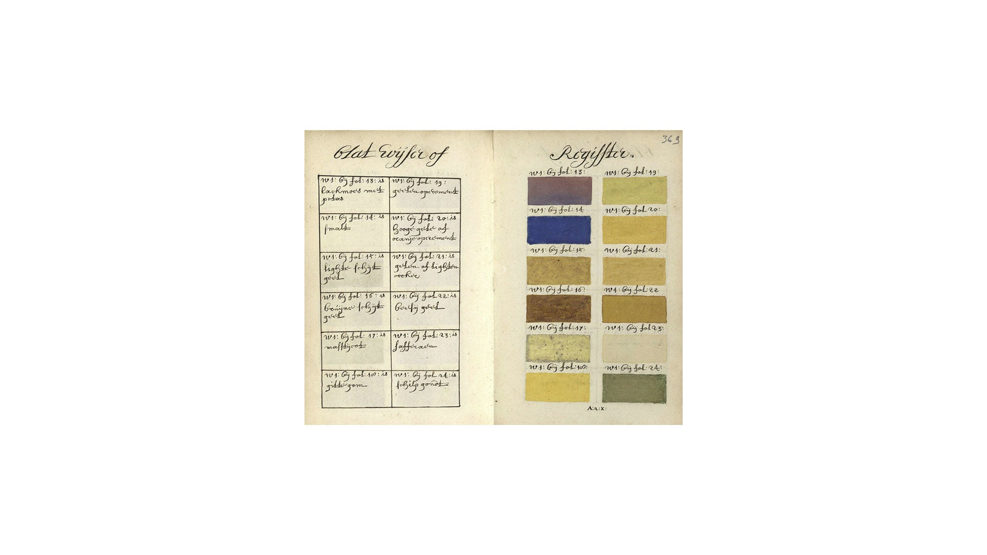 The book reproduces the original text in the author's native language. Over the more than 900 pages, the artist provides the proportions of pigment and water needed to create each color, along with its tones and shades. To illustrate his explanations, he draws each page with the colors he's discussing. In addition to an index listing and arranging all the colors, Boogert states in the introductory text that the book was created for educational purposes.