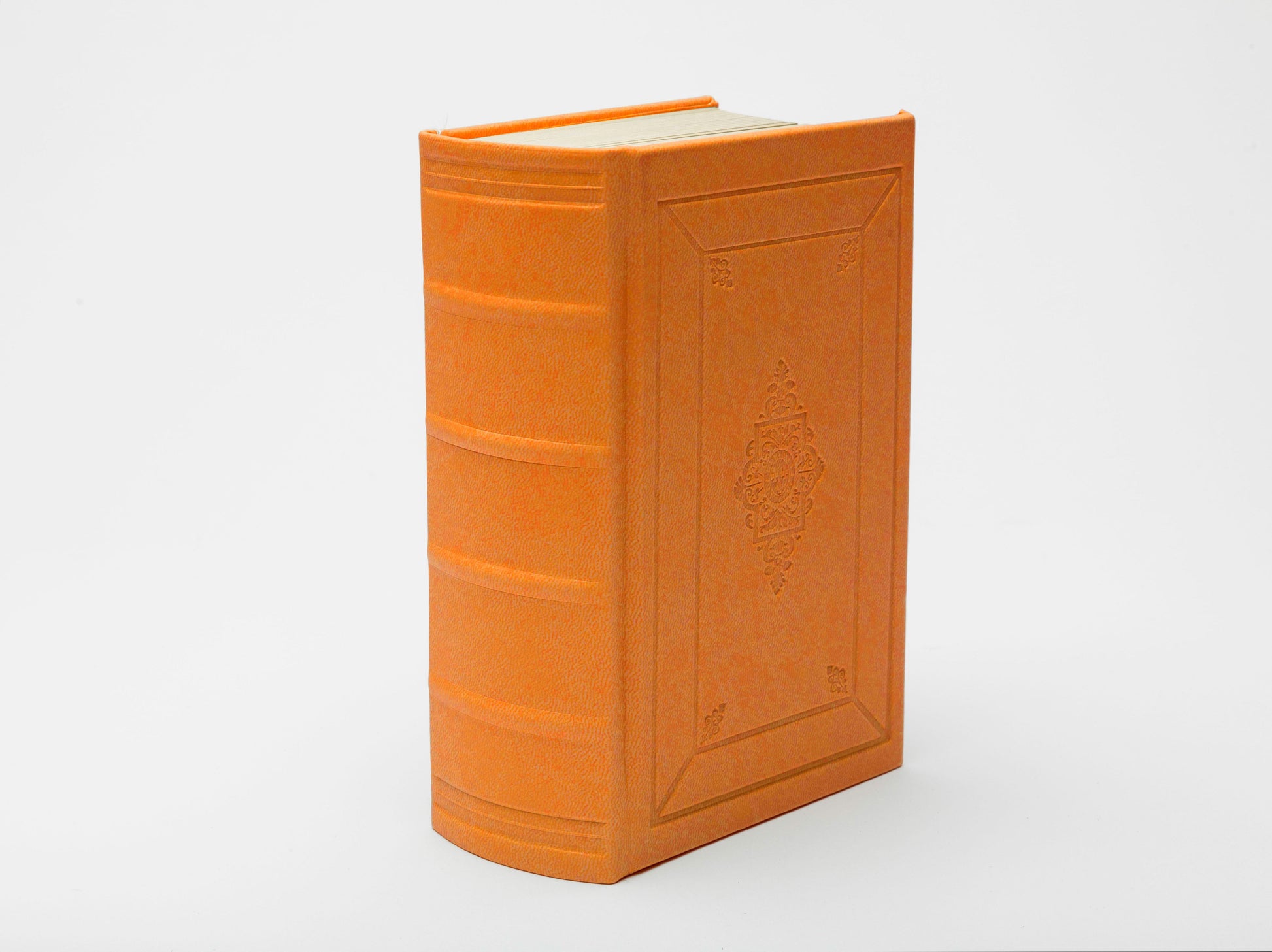 In this new facsimile edition: the yellow leatherette hardcover reproduces the original with the four spine ribs and the original cover design.