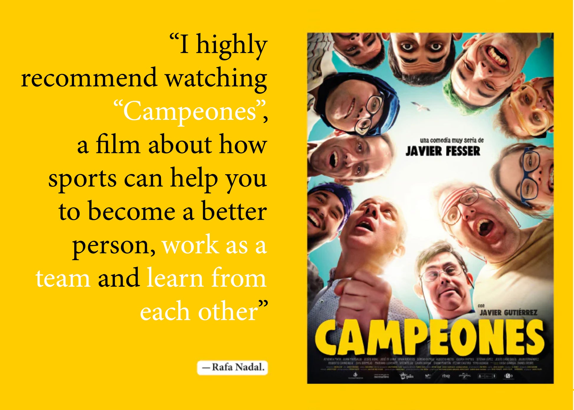 "I highly recommend watching Champions , a story in which sport means overcoming obstacles, working as a team, and learning from each other."