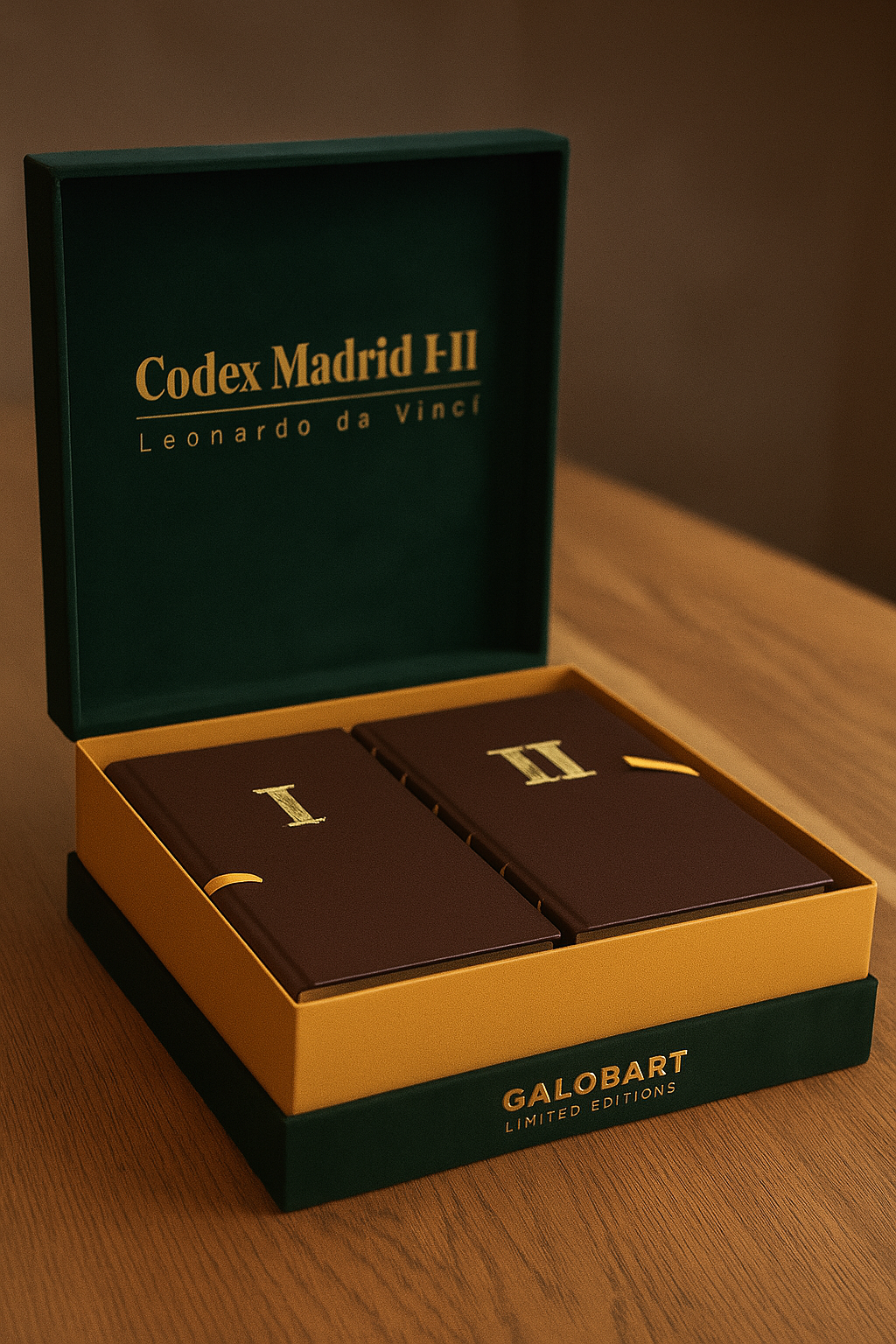 1- The Madrid Codex II, also known as "Treatise on fortification, statics and geometry"or "Madrid Codex of Leonardo da Vinci", is an important manuscript written by the famous Renaissance polymath Leonardo da Vinci. This codex is part of the Leonardo da Vinci manuscript collection and is preserved in the National Library of Spain in Madrid. In this notebook we can find a great variety of studies: topographical sketches, problems of nautical, architectural and military engineering, geometry (especially his studies on the "squaring of the circle"), the flight of birds and some scattered notes on personal matters (the list of books in his library, or of his clothing, for example).