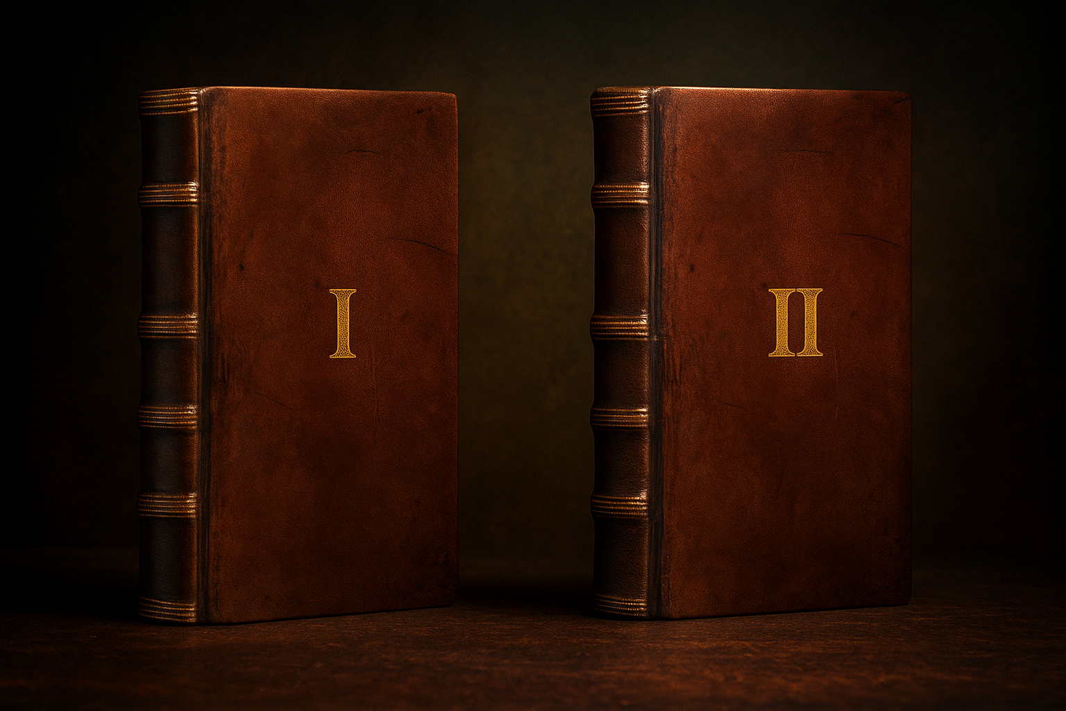 *Goatskin leather binding with gold dry stamping. Hand-bound with ribs on the spine.
