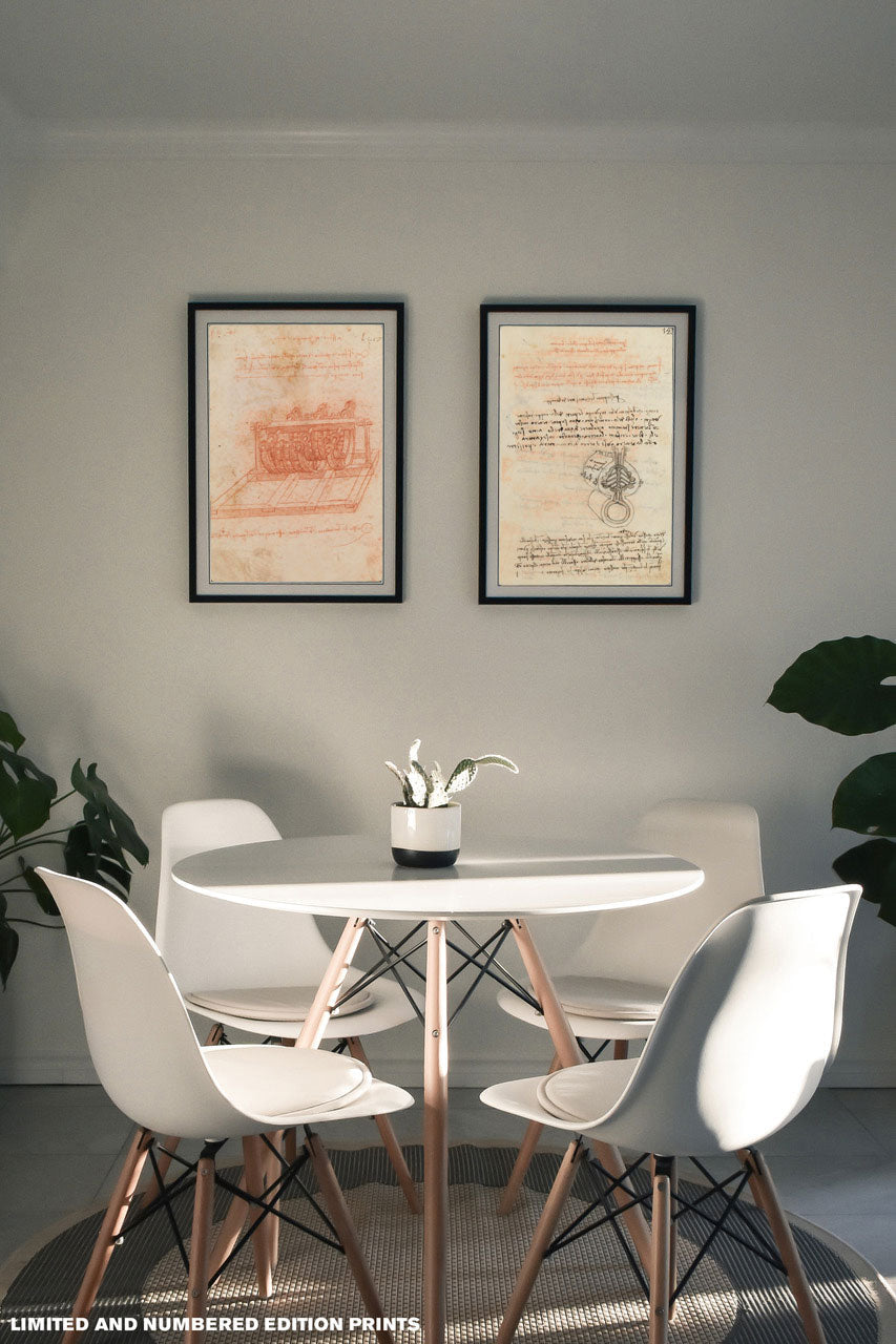 10 art prints on Favini Plus art paper are included for owning an exclusive private art collection featuring Leonardo da Vinci's handwritten notes.