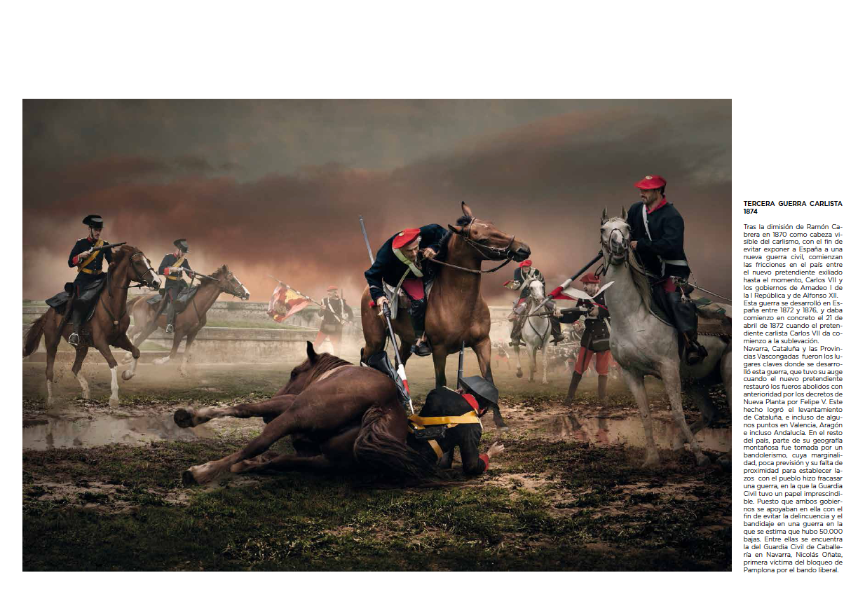 Jordi Bru (Pamplona, 1967) is a professional photographer dedicated to the recreation of historical armies and battles, from the Spanish Tercios to the Second World War, including the Napoleonic Wars, the Carlist Wars, and the Spanish Civil War. He traveled to Bosnia in 1993 and then worked for a decade at the newspaper El Mundo, in the Basque Country and Catalonia offices. After this, he returned to Pamplona, where he works for architecture and culture magazines and for publishing houses in the Basque Country and France. In 2013, he visited a Napoleonic reenactment in his native Navarre and became interested in recreating battles and historical events through photography and digital editing. As a result of his work, praised by Augusto Ferrer-Dalmau, among others, he received one of the commissions he is most proud of: the book "Guardia Civil, the History of the Benemérita in Photography," which, in turn, has brought him into contact with other military forces. For the Army, he created a photographic history of the Galician 64th Mountain Hunters Infantry Regiment in Jaca, one of the oldest in service in the world, in a project that has seen him accompany this unit on missions in Bosnia, Afghanistan, and Lebanon. Always striving for maximum historical accuracy, his work involves meticulous documentation to achieve recreations that are as faithful as they are memorable, bringing viewers closer to key episodes in Spanish history.