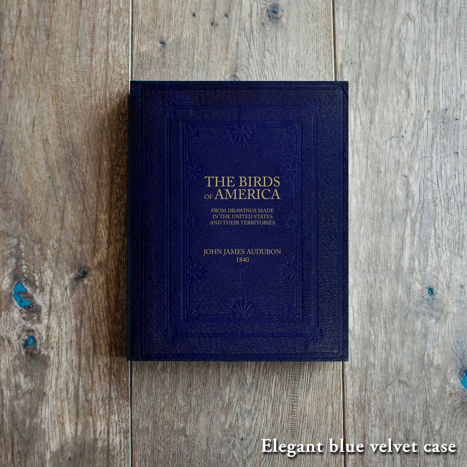 The original book is delivered in an elegant blue velvet case.