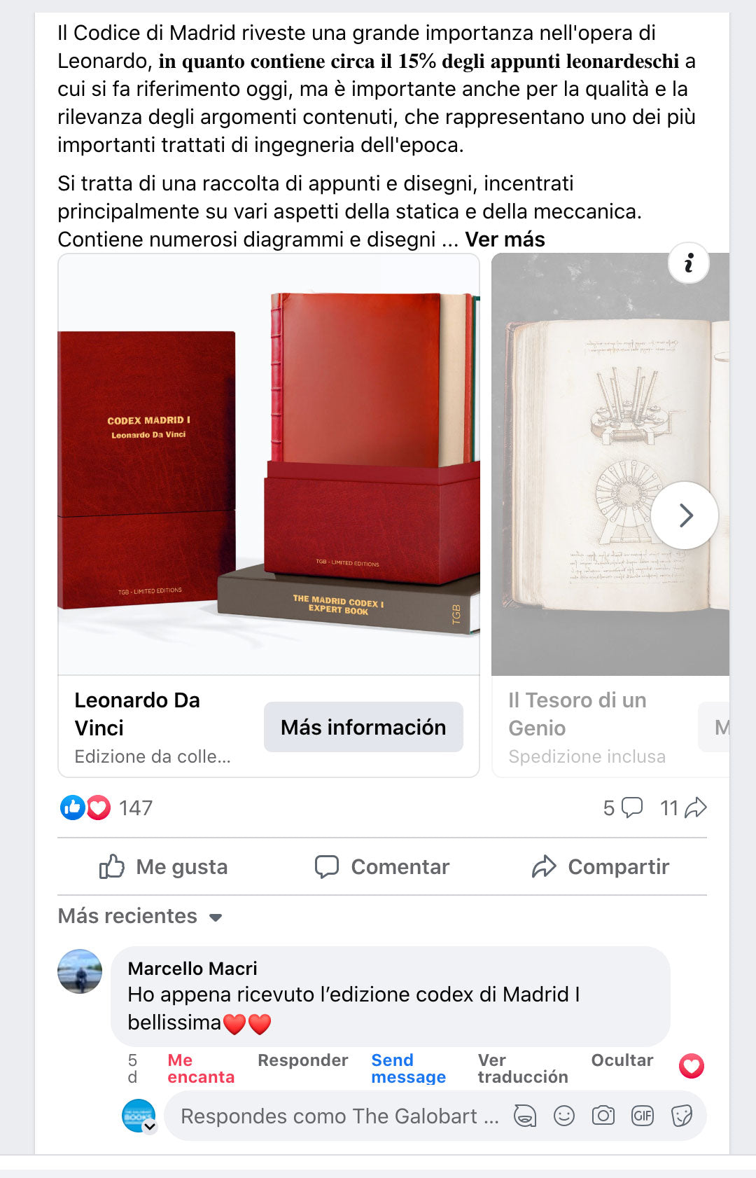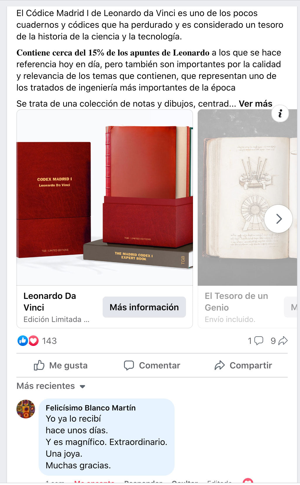 Hola Alejandra. Sólo quería asegurarme de que recibiste mi agradecimiento por el Codex. Hermoso libro y bien vale la pena esperar. Gracias de nuevo. Un saludo.