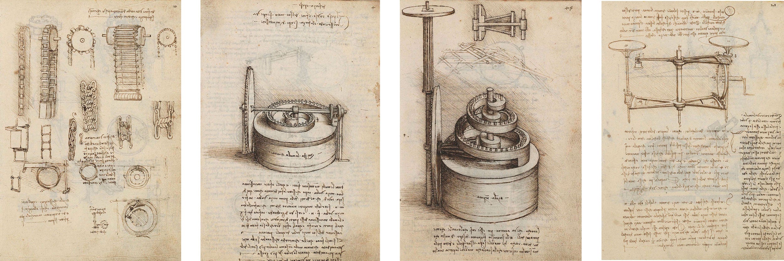 Podemos encontrar, por ejemplo, notas para un reloj de agua y también un diseño para un ala delta que, como se demostraría más tarde, volaba.
